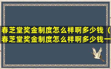 春芝堂奖金制度怎么样啊多少钱(春芝堂奖金制度怎么样啊多少钱一个月)