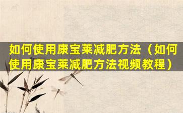 如何使用康宝莱减肥方法(如何使用康宝莱减肥方法视频教程)